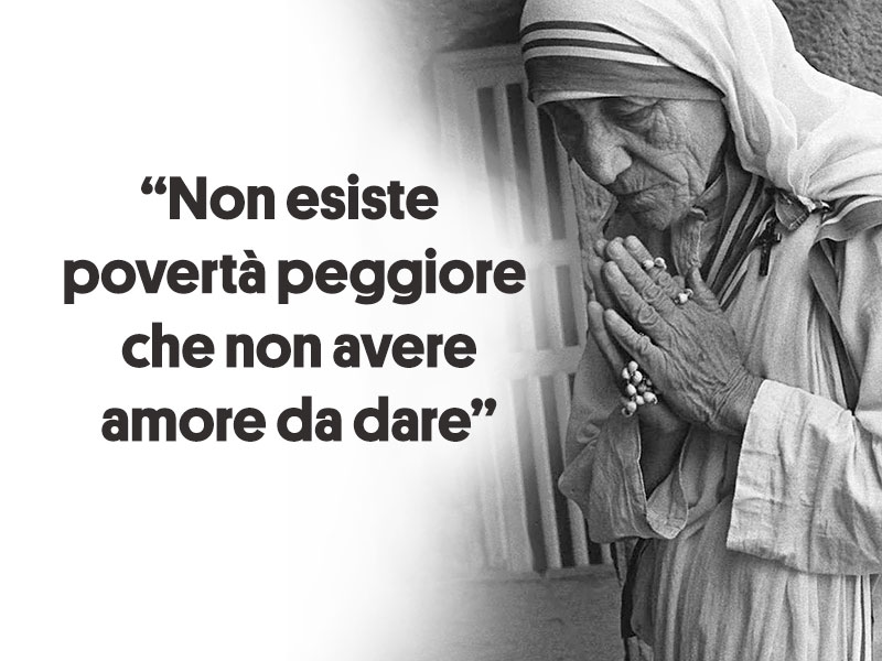 Lettere e scritti intimi di Madre Teresa di Calcutta - Npensieri Non indugi. Non mi trattenga. Voglio cominciare quella vita per la vigilia di Natale. Abbiamo pochissimo tempo, da qui ad allora, per occuparci di tutti gli ... “Ci sono persone”: la bellissima citazione di Madre Teresa Di Calcutta Eppure, ci sono altre persone che sono da sole e vivono e brillano e si lasciano travolgere dalla vita nel migliore dei modi. Persone che non si spengono, ... “Ama la vita”, la poesia di Madre Teresa per apprezzare ogni giorno Nov 6, 2021 ... Gli insegnamenti di Madre Teresa di Calcutta sono sempre stati pieni di saggezza e di amore. nella poesia “Ama la vita”, il Premio Nobel per ...