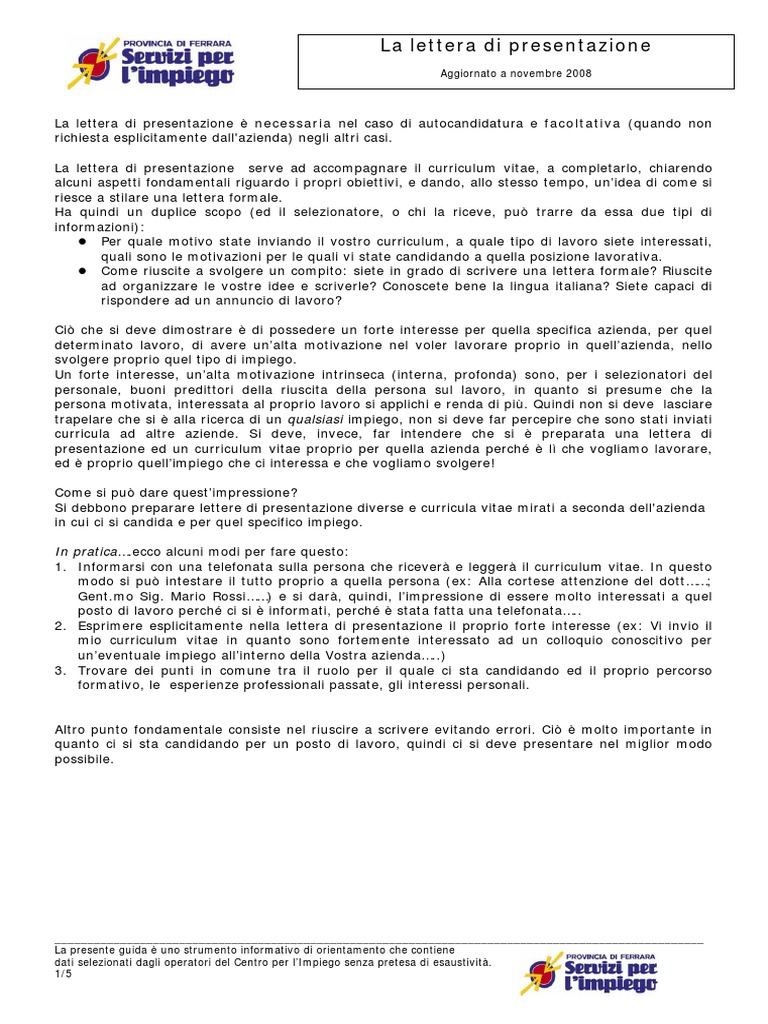 La lettera di presentazione: scrivila nel modo giusto - Almalaurea La lettera di presentazione accompagna il tuo curriculum vitae e ti consente in poche righe di raccontare chi sei, cosa cerchi e quali sono le tue ...