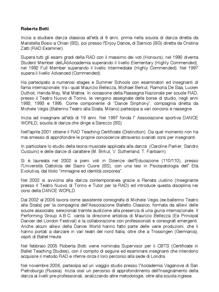 Esempi di CV: insegnante di ballo | ilCVPerfetto Esempi di CV da insegnante di ballo. Preparare un completo curriculum vitae da insegnante di ballo è un'operazione indispensabile per presentarti presso qualsiasi scuola di danza e far conoscere le tue abilità, le tue esperienze e il tuo percorso di formazione. Segui il modello di curriculum vitae da insegnante di ballo che abbiamo ... 200 frasi, citazioni e aforismi sulla danza - Aforisticamente Un corpo che danza crea tanti corpi che danzano. (Fabrizio Caramagna) Lodo la danza perché libera l'uomo dalla pesantezza delle cose e lega l'individuo alla comunità. Lodo la danza che richiede tutto, che favorisce salute e chiarezza di spirito, che eleva l'anima. (Sant'Agostino) Chi non danza non sa cosa succede.